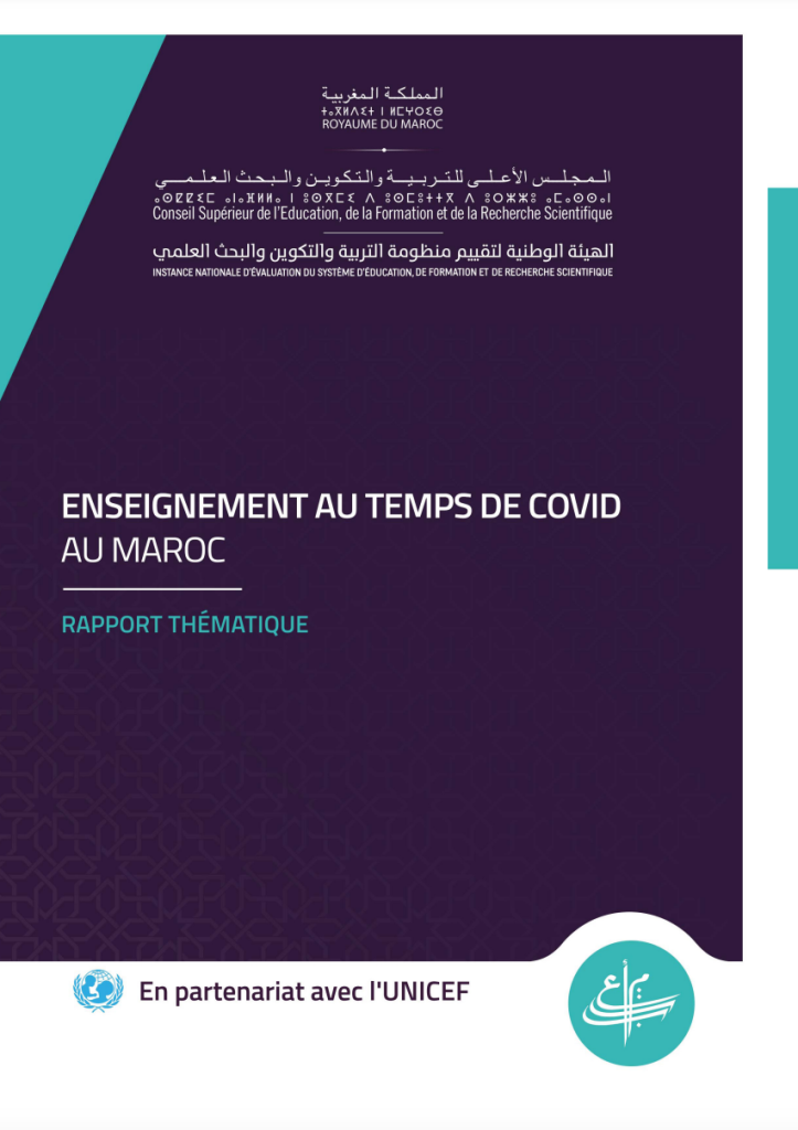 12 novembre 2021Le rapport présente les résultats de l’évaluation « L’enseignement au temps de Covid » réalisée par l’Instance Nationale d’Évaluation auprès du Conseil Supérieur de l’Éducation, de la Formation et de la Recherche Scientifique (INE-CSEFRS), en partenariat avec l’UNICEF.