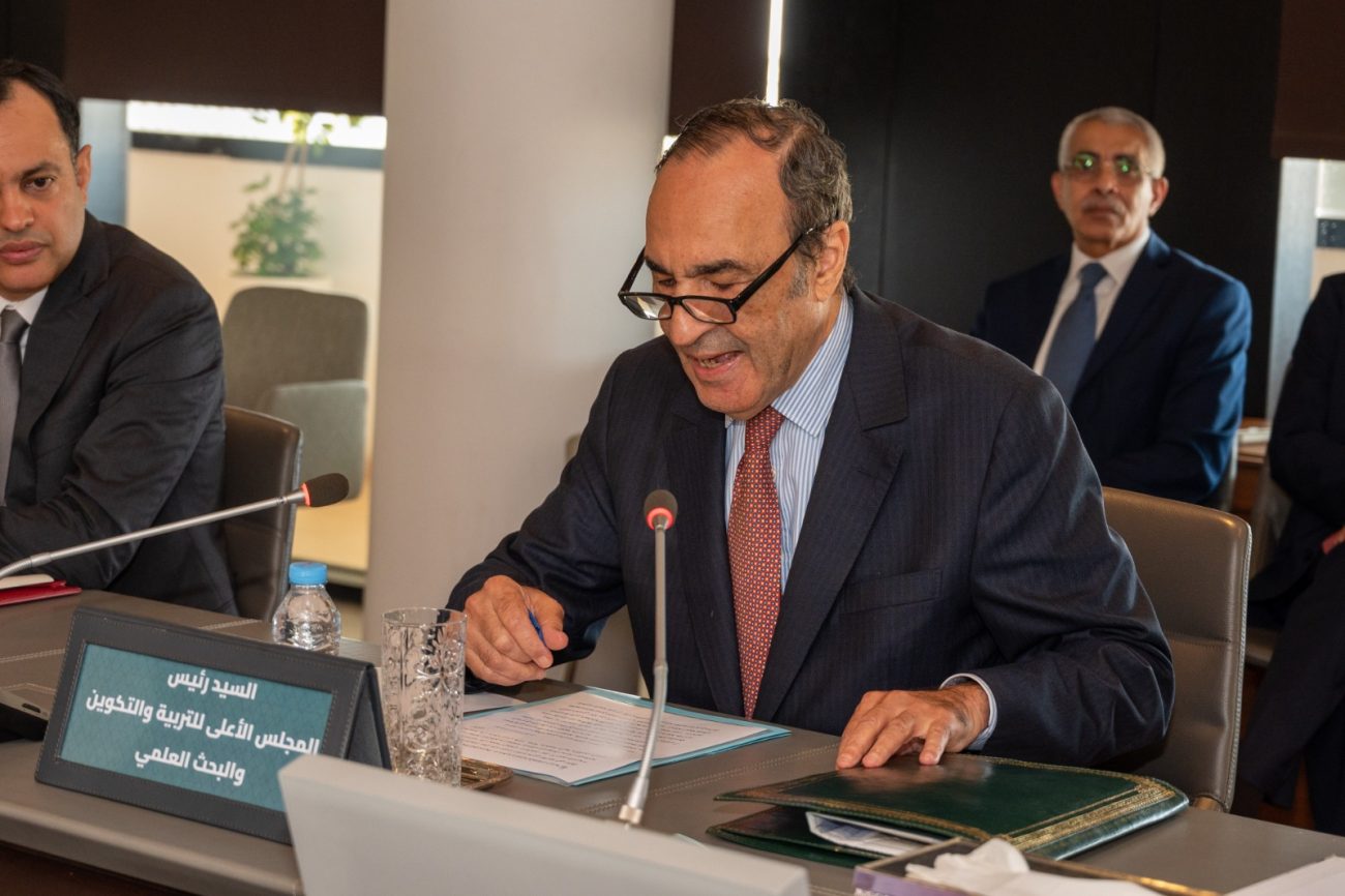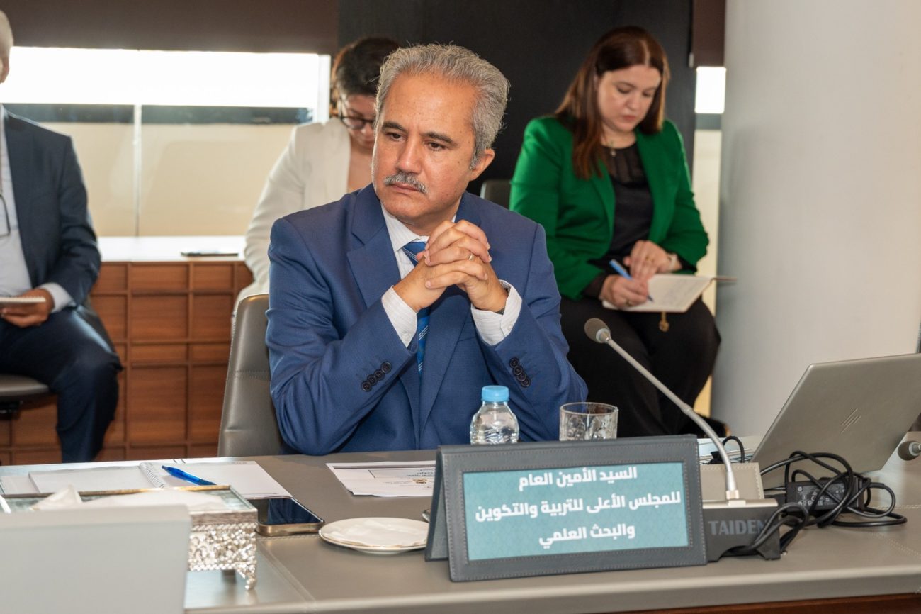 حضر هذا الاجتماع، الذي ترأسه السيد رئيس المجلس الأعلى للتربية والتكوين والبحث العلمي، كل من السيد وزير الإدماج الاقتصادي والمقاولة الصغرى والشغل والكفاءات، والسيد وزير التعليم  العالي والبحث العلمي والابتكار، بالإضافة إلى السيد الأمين العام للمجلس الأعلى للتربية والتكوين والبحث العلمي والسادة الكتاب العامون لقطاع التربية الوطنية والتعليم الأولي والرياضة، وقطاع التعليم العالي والبحث العلمي والابتكار ، وقطاع التكوين المهني، والسيدة الكاتبة العامة لقطاع الثقافة، والسيد مدير مديرية التعليم العتيق بوزارة الأوقاف والشؤون الإسلامية، والسيد مدير الهيئة الوطنية للتقييم لدى المجلس .