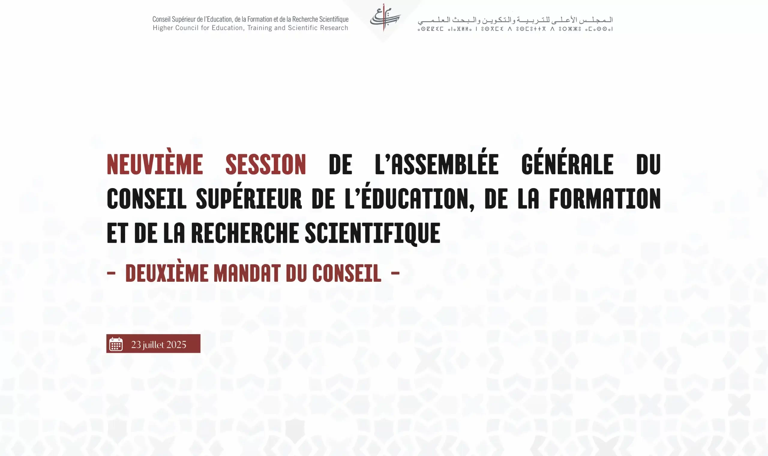Résultats des travaux de la 9ème session du second mandat du Conseil Supérieur de l’Éducation, de la Formation et de la Recherche Scientifique
