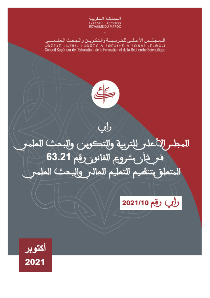 رأي المجلس في شأن مشروع قانون رقم 63.21 المتعلق بتنظيم التعليم العالي والبحث العلمي